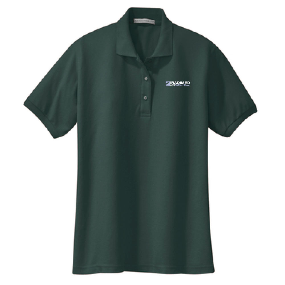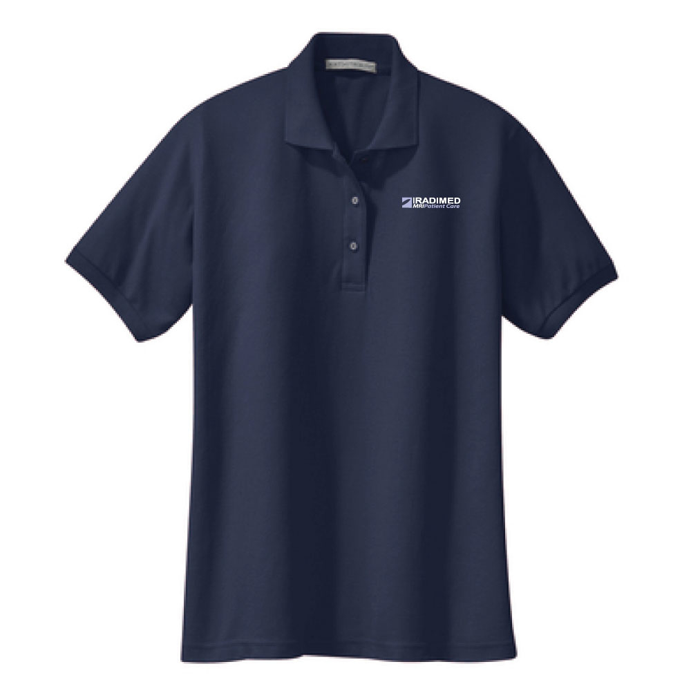 5-ounce, 65/35 poly/cotton pique Flat knit collar and cuffs 3-button placket Metal buttons with dyed-to-match plastic rims Side vents